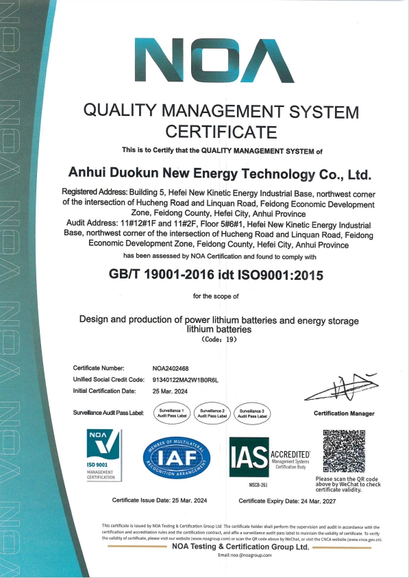 质量管理体系认证证书